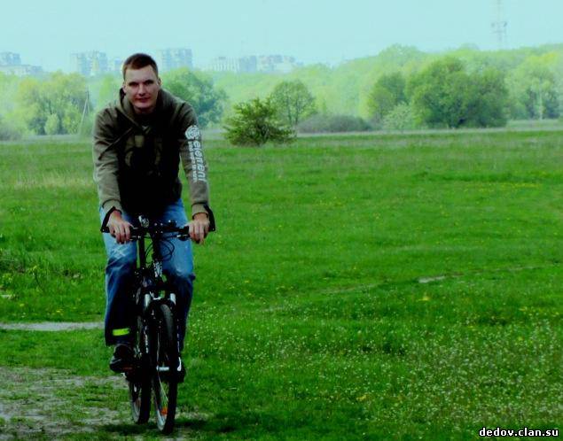 та ты чо, я и рожу выкладывал как-то, и стоковую фотку лисапета )) а рожу даже деды в Питере видели мою, лично )) не говоря уже про фотку правда, та личная встреча была почти 3 года назад, я как раз окончил свой универ, и приехал автостопом в СПб, потусоваться, красоту понаблюдать.... ) вот, в общем, одна моя, с недавней загородной прогулки на лясике, правда его подо мною не особо видать ))) сейчас под рукой нету фоток, где вел экипирован велобаулом...