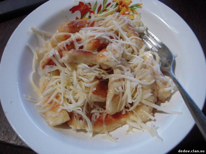 | Nikita_Nikitin, это ленивые варенники, поэтому начинка снаружи - это сыр  Добавлено (16.11.2009, 18:30:44) --------------------------------------------- Напомню, они делаются из творога.